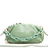 Bolsa tiracolo em material tecnológico macio, fechamento em aro de pressão, alça de corrente removível.