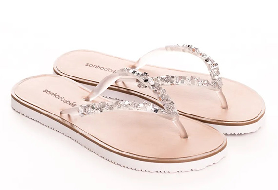 Chinelo em material tecnológico, possui aplicação de pedraria no cabedal Pra brilhar! Muito glamour envolvido! Produtos queridinhos para dar aquele toque de brilho e elegância as suas produções mais especiais nesse verão!