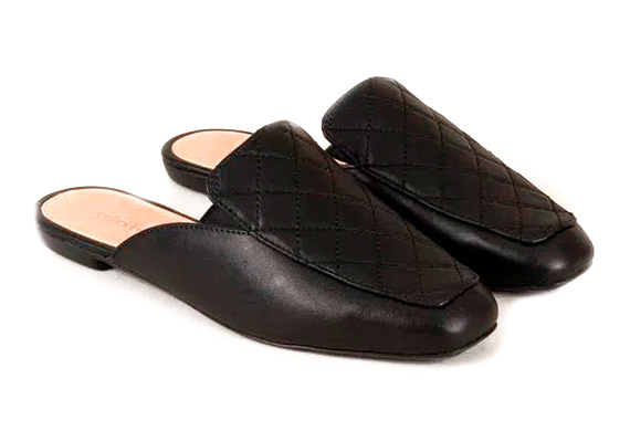 Mule em material tecnológico acolchoado, cabedal em costura de matelassê