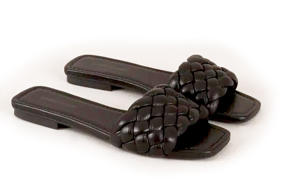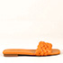 Rasteira chinelo em couro, palmilha de bico quadrado, cabedal em tira trançada