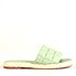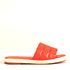 Rasteira chinelo bico quadrado em material tecnológico, cabedal em tira de matelassê acolchoado
