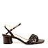 Sandália baixa em couro, salto bloco de 5,5 cm, cabedal em tira trançada, fechamento em fivela no tornozelo.