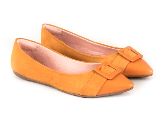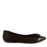 Sapatilha bico fino em camurça, bico em napa, possui enfeite de fivela no cabedal