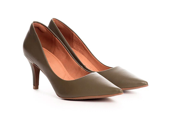 Scarpin bico fino em material tecnológico, salto fino de 7 cm