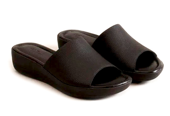 Tamanco em material tecnológico, cabedal em tira, solado anatômico de 4 cm, palmilha com tecnológia comfort